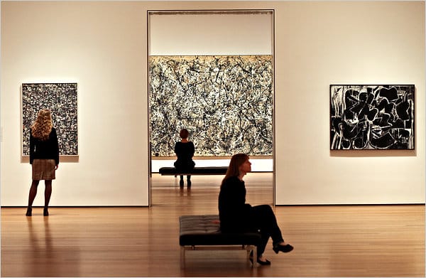 - Also of note is the New York Times photo of the AbEx show. The three well-dressed women intelligently looking at the paintings in the paper’s photo are actually [GASP] posed! Creating his own Jeff Wall, Fred R. Conrad faked the installation shot, and the Grey Lady betrays its anger in an Editorial Note. Personally, I think it looks good.