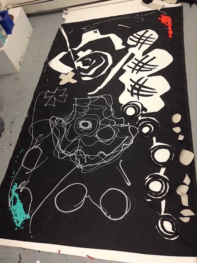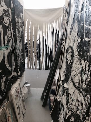 Rifka and I recently re-connected at her Gowanus studio, where things were just as lively: black-gessoed, unstretched canvases on the floor, the walls, stacked on tables, and flung over chairs. Rifka cut out a black square canvas-collage and gave it to me—telling me she designed this work to be affordable for everyone—before we headed to the local Italian wine bar to talk.