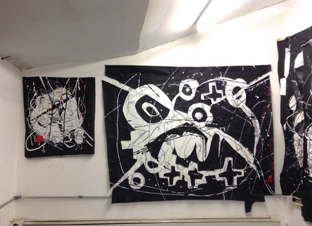 Sometimes, when I go to someone’s studio and see all the canvases on stretchers, it seems pretentious, almost funny. How long can you keep doing that? But, on the other hand, with my unstretched work, people don’t know to deal with it. Although they could just staple it to the wall and tell it like it is. It makes it more fun – it’s like a shirt that you throw over a chair.