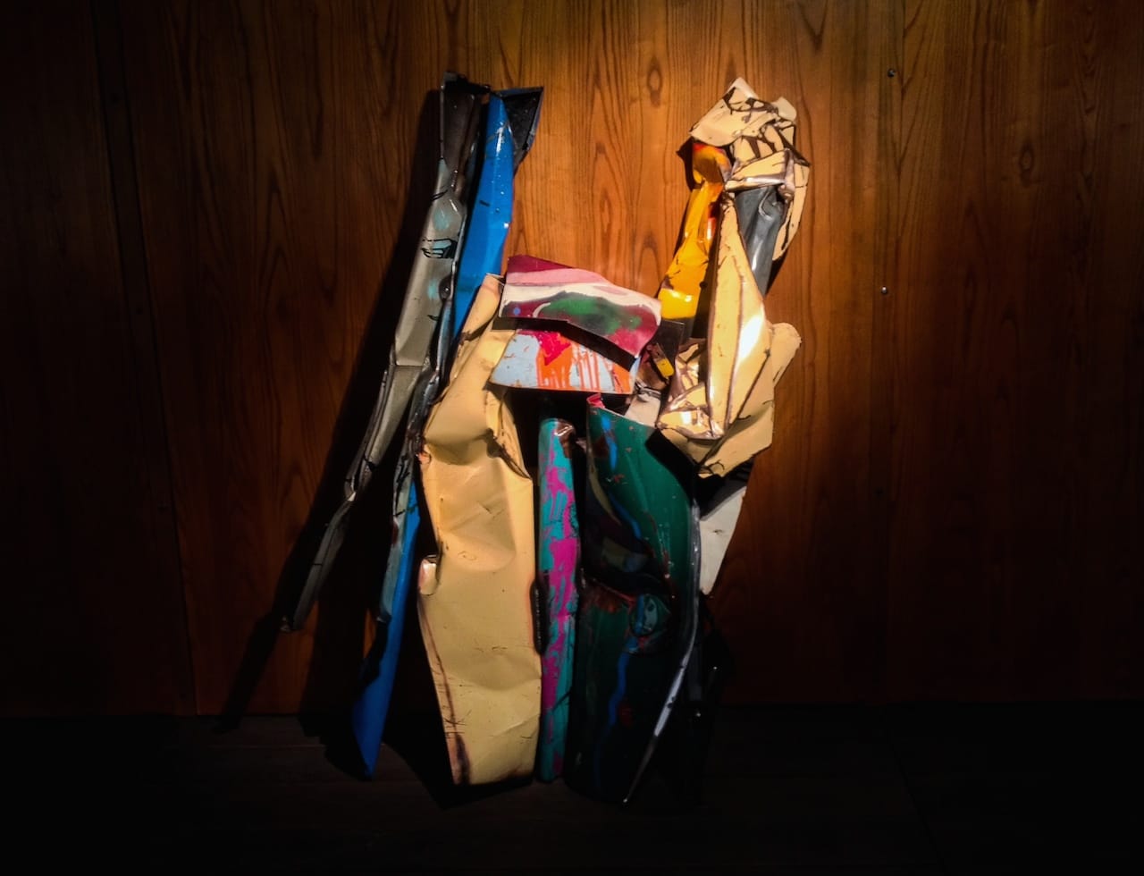 To the extent that mobility factors into Chamberlain’s work, it exists to be disabled entirely. Chamberlain may have been looking to tease abstract expressionist forms from conventional automotive design, but the effect runs much deeper. Hunks of recognizable metal, which once combined to move powerfully across distances long and short, get twisted beyond repair in Chamberlain’s hands. Despite their bright colors and shiny edges, there is simply no getting around the fact that he presents his audiences with densely mangled car parts — evidence, often, that more than a machine’s simple utility has been erased.