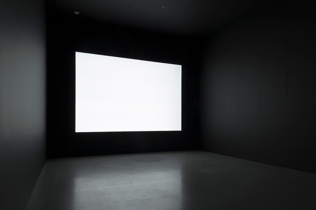 Turn the corner, and you’re confronted with a large panel of blindingly bright light (there are warnings to the photosensitive at the entrance to the installation). Simultaneously brutal and breathtaking, the punishing intensity of the white light may be, as the artist apparently intends, a lament for the willful blindness of political, military and economic leaders, but it is also a spectacle that’s both severely minimal and deliriously excessive.