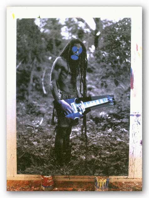 Richard Prince is a guy with scissors and a squeegee whose body of work under consideration, Canal Zone, consists mainly of Cariou’s Yes, Rasta compositions carelessly cut up and painted on, and then pasted to canvases: these derivative works comprise a childish, half-baked story-board for an as-yet-unmade film about a guy in a Rasta band.
