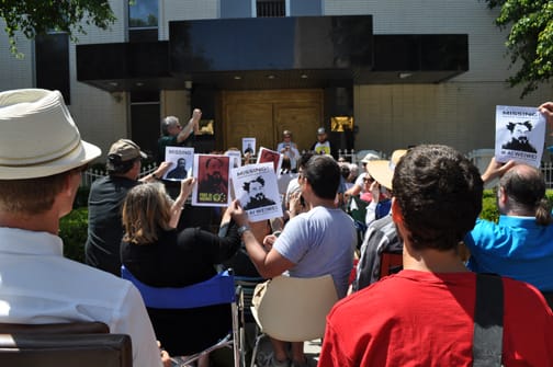 - From blog iGreen come some more shots of the Los Angeles Ai Weiwei protests, which drew around 40 people.