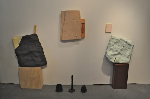 A view of (left) The Heroes’s (aka Michael Kenney & Katherine Young) “Releasing Bound Water from Green Material (Dissolution)” (2011) and (lower right) Sherman T’s (aka Ryan Franklin & Elisa Lendvay) “Thoughtform” (2011).
