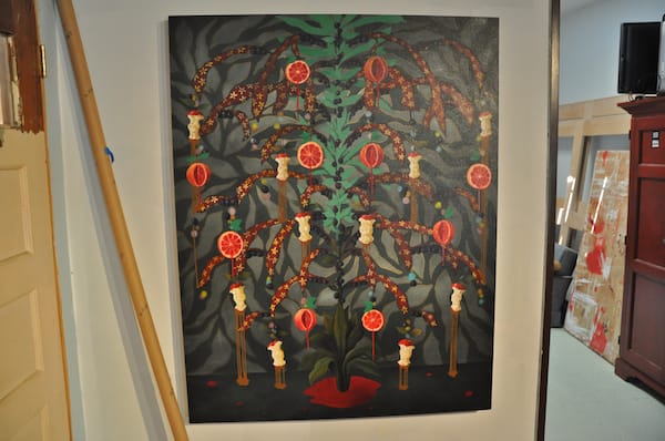 For me, one of the biggest pleasures of an open studio event is discovering new artists. Here is Max Key’s “Blood Oranges and Apple Cores” (2008), which was as ornate as I could imagine everyday fruit could get.
