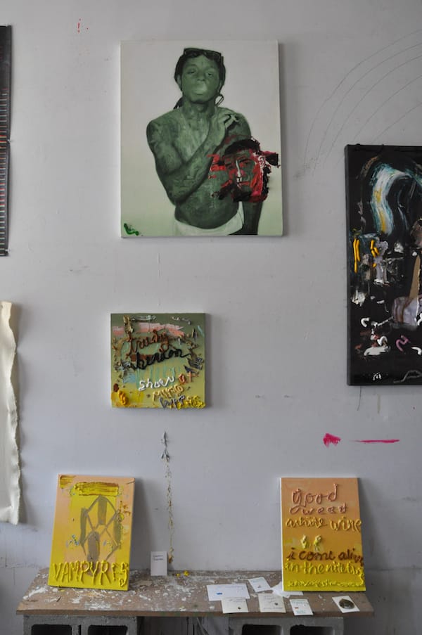 I liked this luscious work by Yasamin Keshtkar, who has recently been creating these paint out of the tube works. Another read “good weed, white wine, i come alive, in the nitetime…”