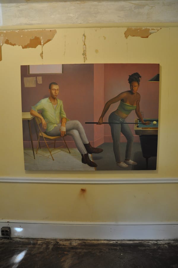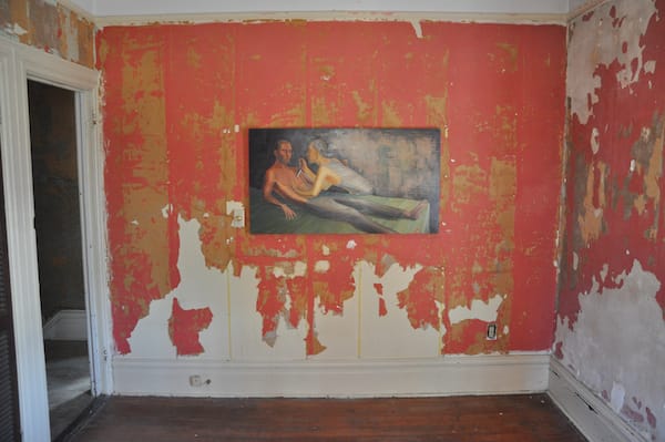 One of the best shows that took part in Northside Open Studios was the untitled exhibition at the North Henry Annex. Here, Aaron Gilbert’s “Patricide” (nd) is beautifully placed on a decaying wall.