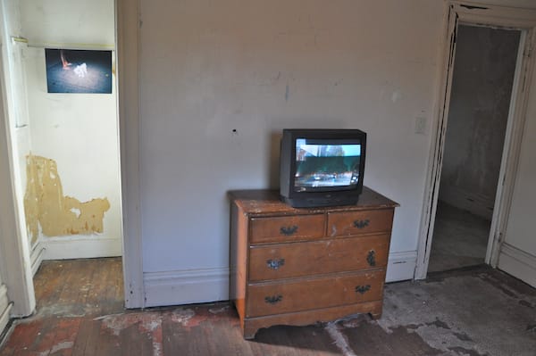 Other works at the North Henry Annex show were Nathan Whipple’s photograph (left), “Doggies at Night No.7” (2011), and Bradford Willingham’s “Untitled” (2011) video work.
