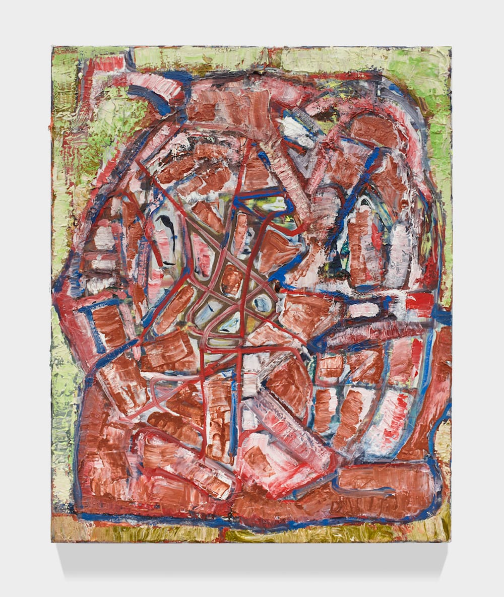 At one point, while looking at “Stone Wash Freezer Burn” (2016), I imagined the artist using a straightedge razor to lay the paint down, methodically working it back and forth over the surface as he tries to smooth out the layers of colored paste, one atop another. When it comes to DiBenedetto’s painting, looking is that visceral. No one else that I can think of comes close. I kept getting closer to the painting, like a doctor or jeweler, as I pored over its irregular, scarred surface, noticing each of the different material manifestations of paint that the artist brought together in a single work. It was not unlike hallucinating, of watching something seemingly solid slowly pull apart and reconfigure.