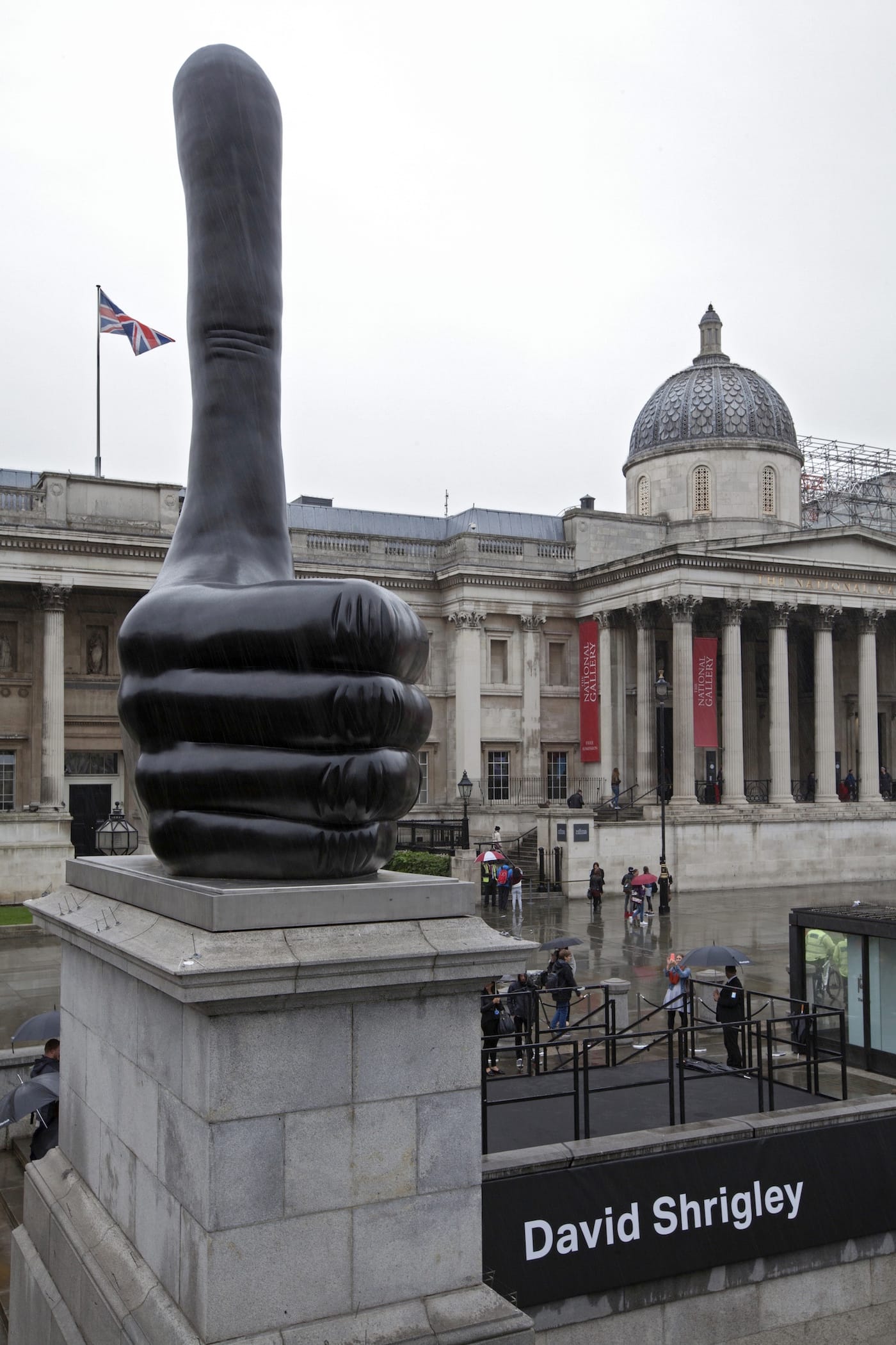 David Shrigley‘s “Really Good” (2016) was installed on the Fourth Plinth in Trafalgar Square. The 23-foot-high bronze sculpture is the 11th work to be commissioned for the space since the project’s inception in 1999.