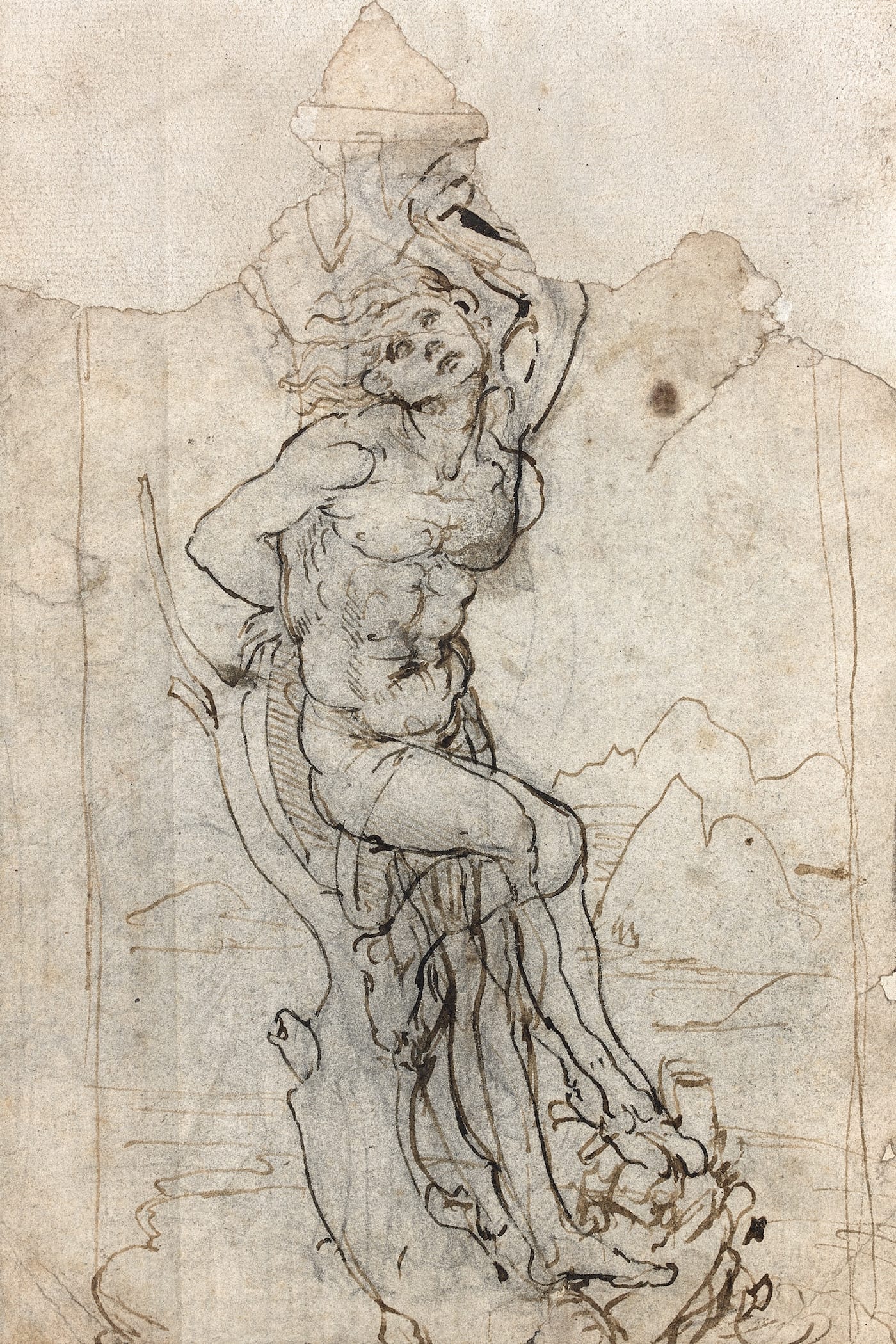 A double-sided drawing by Leonardo da Vinci, believed to be his study for a long-lost painting of St. Sebastian, has resurfaced in France. The pen-and-ink illustration, measuring about 7 1/2 by 5 inches, emerged from the collection of a book-loving Frenchman, as the New York Times reported, and was brought to the attention of the auction house Tajan by his son (who has preferred to be anonymous) last March. The work stood out to Thaddée Prate, Tajan’s director of Old Master pictures, amid the man’s portfolio of 14 drawings; after consulting other experts, Prate determined that it is indeed a work by the hand of the Renaissance artist.