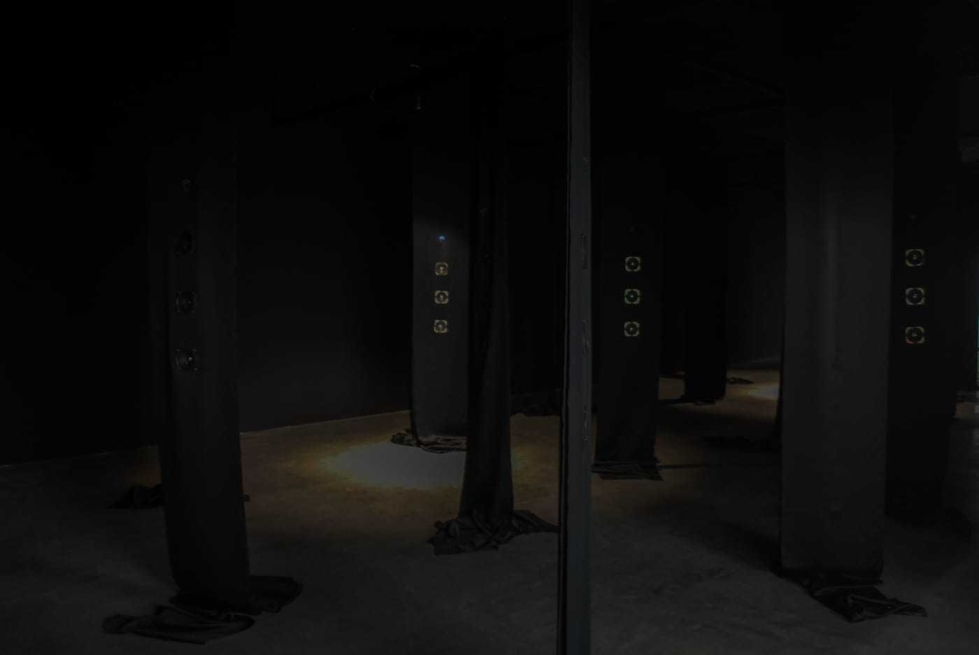 We see this further explored in Tintin Wulia’s work, “Untold Movements – Act 1: Neitherland, Whitherland, Hitherland” (2015), in the same exhibition. Wulia invites us through a darkened room with black cloth pillars broadcasting stories of detainment and arrest at borders around the world. As the editor of Art Monthly, Michael Fitzgerald, writes, the 32-channel sound installation “speaks of the shadow land of globalisation, of souls lost in displacement and hovering between states and national borders.”