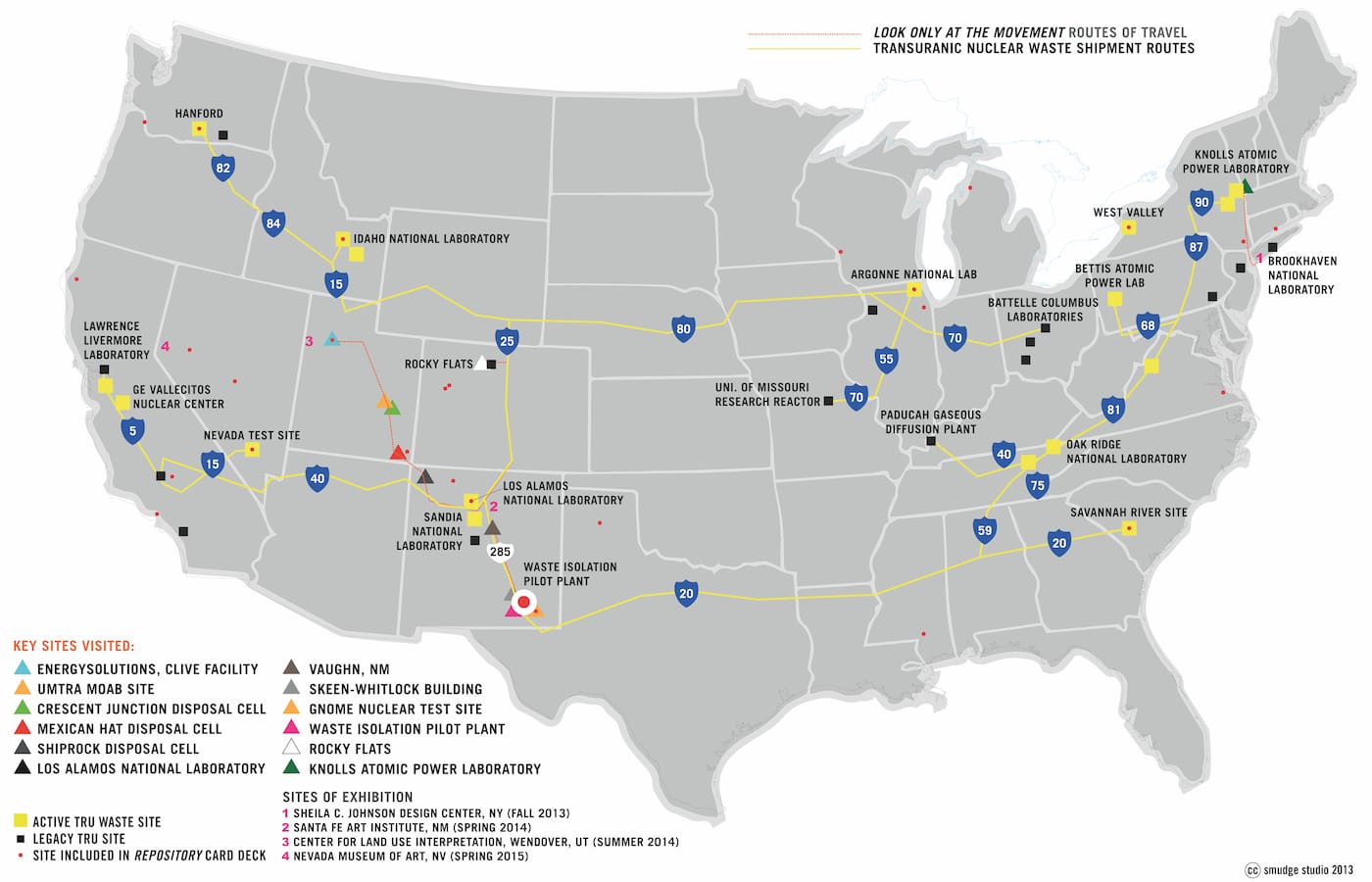 While the Mattes are keen to document the invisibility of fallout, the attempt to the so-called “dyeing” of radiation — its forced materialization — is thoroughly demonstrated by the Source Book. Carpenter presents several cross-disciplinary efforts to mark radioactive material, from the development of Nuclear Semiotics in the 1980s to Toshiba’s gamma camera (a recent invention capable of capturing the density of radioactive isotopes by color).