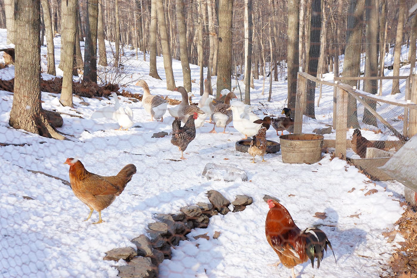 Less visible during my wintery visit are a stream and waterfalls, and though the Weintraubs keep beehives and animals ranging from fowl and rabbits to sheep and pigs, at this time of year, only ducks, geese, and chickens are in evidence.