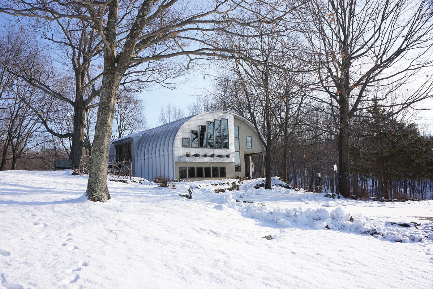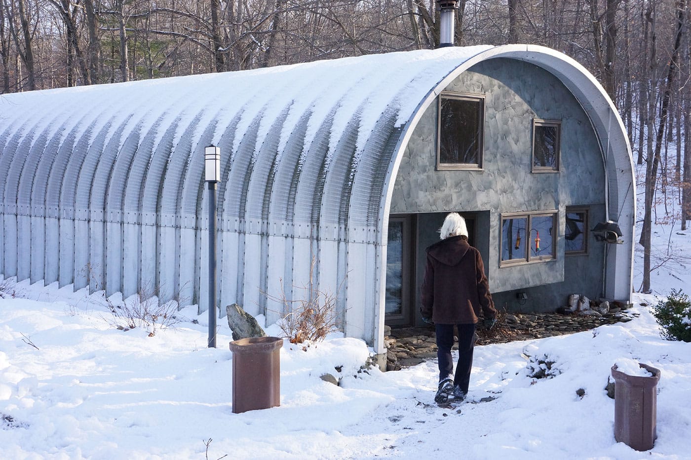 Their current home, of the last two decades, is an 11-acre property in the Hudson Valley. The compound consists of three ultra-efficient galvalume (steel coated in zinc and aluminum) structures surrounded by a meadow, an orchard, multiple gardens, and a pasture, all ringed by forest.