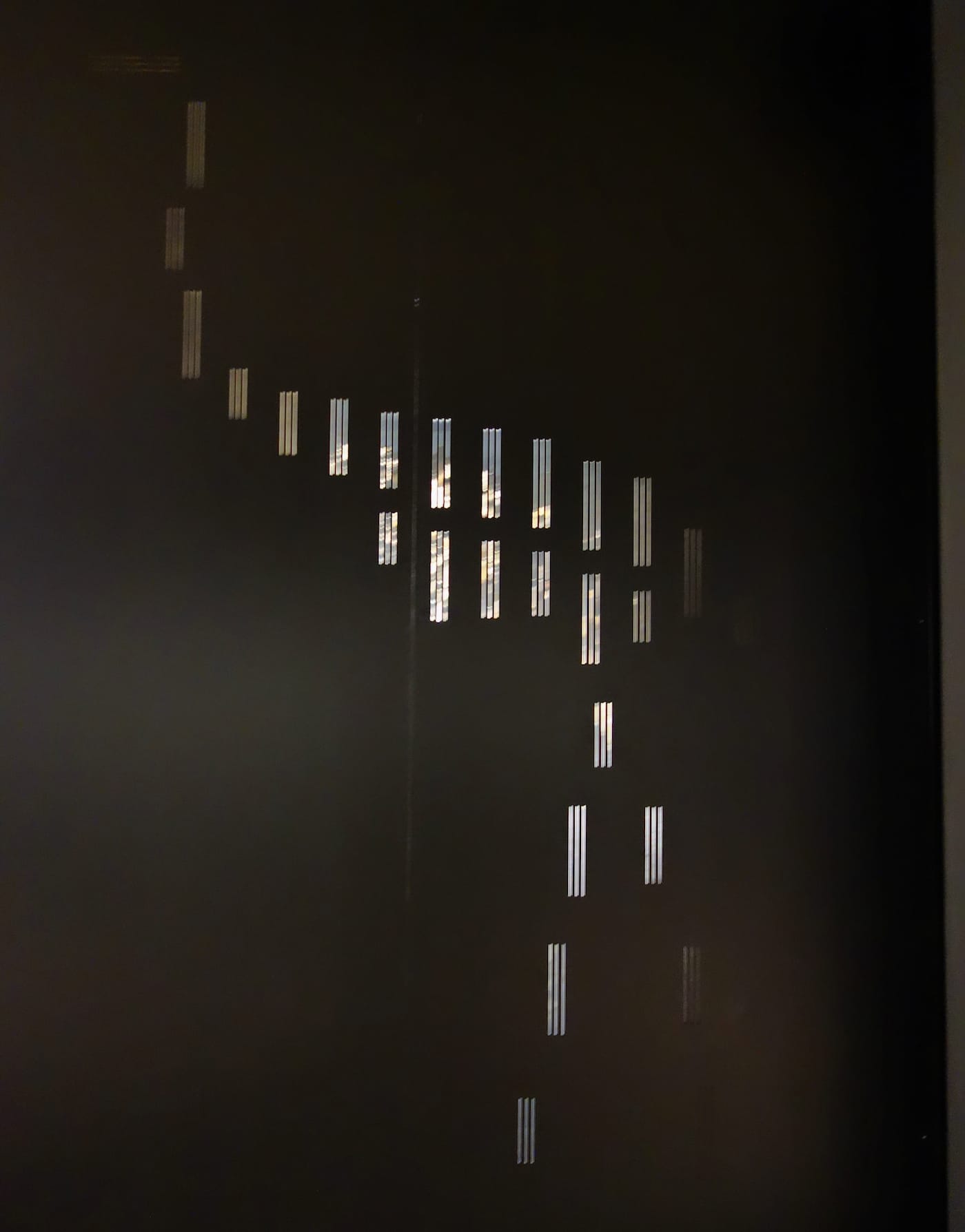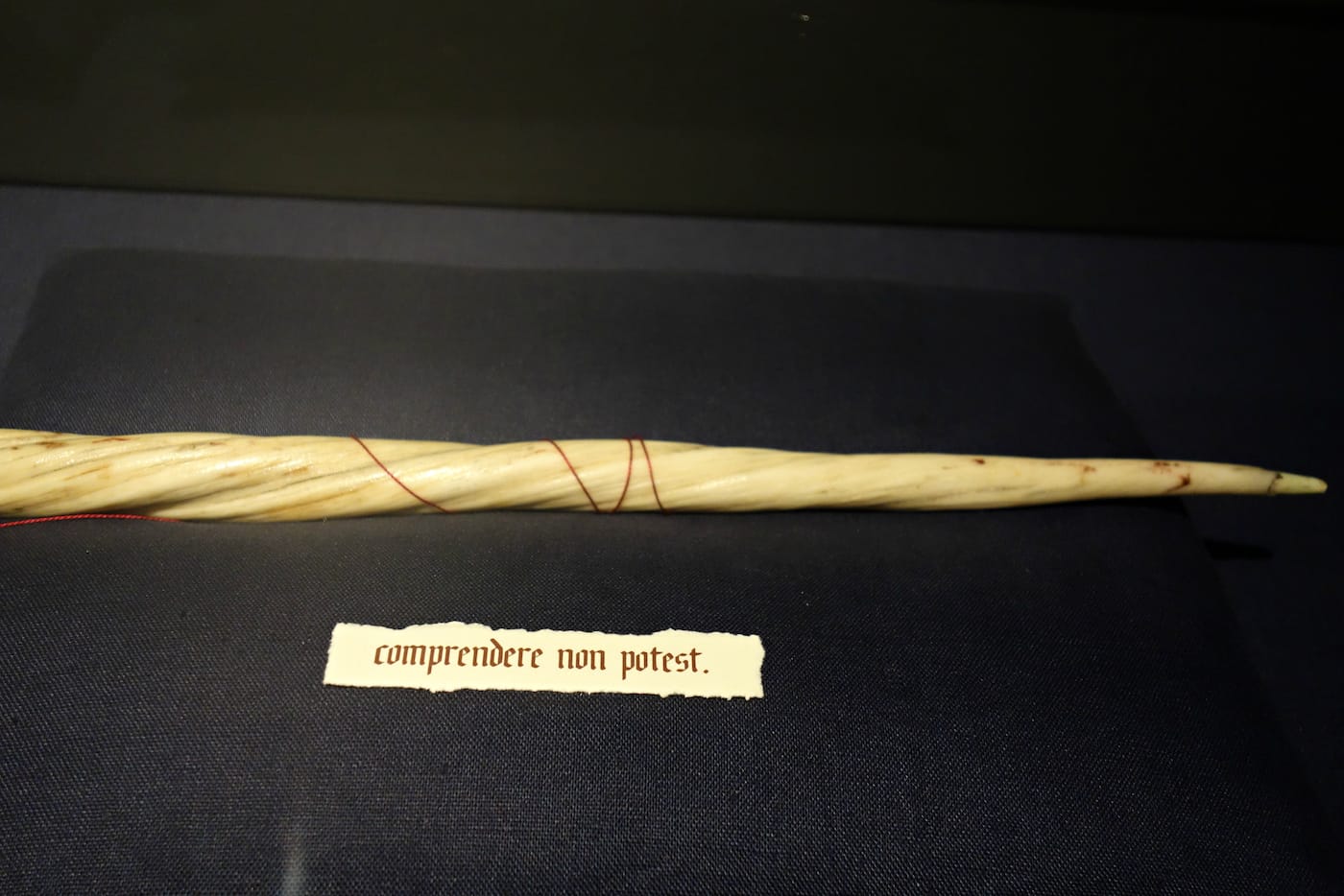 Other objects require more attention to perceive, such as a North Island giant moa visible only through bird-shaped slats. On the front of its black box is an unlabeled peephole, through which you can glimpse a small Mappin’s moa feather. The wingless moas were an older loss, eradicated centuries ago due to overhunting in New Zealand. Nearby, a poem by W. S. Merwin, called “Far Company,” acts as a eulogy for them: “At times now from some margin of the day / I can hear birds of another country / not the whole song but a brief phrase of it / out of a music that I may have heard … ”