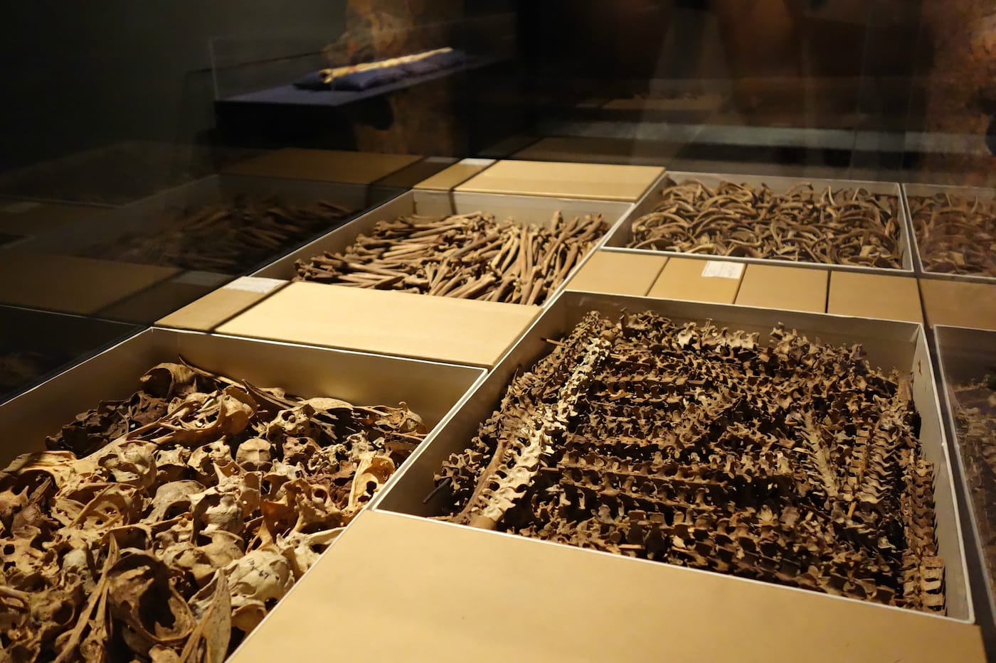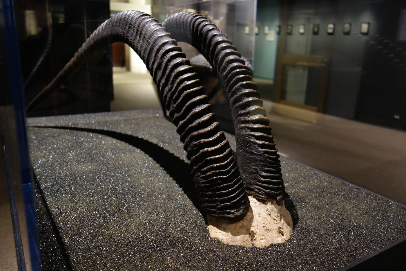 The nine sculptural installations, made with Ed Morris and Susannah Sayler of the Canary Project, feature physical remains of animals both extinct and endangered. Horns of a giant sable antelope, which is critically endangered by military conflict and a restricted range in Angola, have stunning curves and ridges. The tiny egg of an extinct heath hen is protected by a huge mound of cotton that visually reinforces the preciousness of the diminutive artifact. (The final heath hen, nicknamed “Booming Ben” for its call, which could carry further than a gunshot, died on Martha’s Vineyard in 1932.) Boxes of bones from the great auk hint at how populous the flightless bird once was, until the predator-free species encountered humans, who took advantage of its fatal trust and stuffed pillows with its feathers. A great auk was last seen in 1844 on Iceland’s Eldey Island.