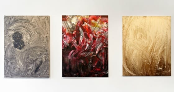 Alissa Beremboym’s three “paintings” read like a sort of confusing triptych. At first glance they come off as flat, brushy, painty abstractions. Looking a little closer they behave like rouge Ikea prints. The artist makes paintings, scans them and Photoshops them, overlaying found photographs to create a mash up of reference and direct artistic action. Her print “Platinum” overlays the same brushstrokes from the painting next to it, “Seasoned 3,” onto a photographic bed of platinum blond hair, conflating the whimsy of the hand with that of the found object. I’m not totally sure about these, they are funny and they weird me out, but I think that’s healthy. There is formal detail, but also an instance, like my aforementioned 6 year old, kicking and screaming and yelling “mommy look what I did.”