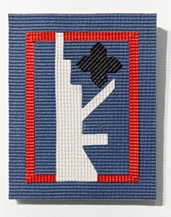 Though, relatively straight forward in comparison, tapestries by Leah Dixon similarly transmute common perceptions about traditional methods of art making. Her woven wall hangings depict the imagery of violence so common in the 24-hour news cycle with woven yoga mats. They read like Afgani rugs of war, a facsimile of traditional craft and its imagined pollution by the visual fallout of armed conflict. If you’ve ever walked around Park Slope during the day, bright purple and blue yoga mats are clearly visible. In fact, I can’t stare at the material without thinking about would be serene yuppy types. That tension, between material and content, is what defines this exhibition. Honestly, I walked into the space and thought, “oh, I’m hot and cramped, and this looks silly.” It was only after sitting for a couple of minutes to cool my heals, that the haunting, complex nature of things began to emerge. That is how I will remember it, a reminder to look more closely, that like Dixon’s yoga mats, our visual and artistic culture often requires more time than we give it.