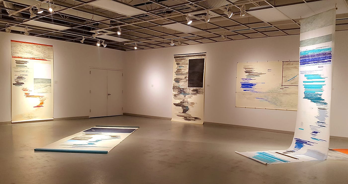 Anne Gilman's super-sized scrolls feel like hand-drawn maps, perhaps charting a journey through a metaphysical region.