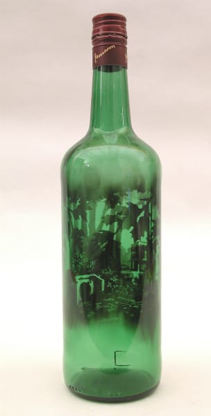 The most engaging video works were Glithero’s “Burn, Burn, Burn” (2007) and “Fire Drawings” (2012), where a flame creeped along flammable paint, leaving a scorched trail. It reminded me of another work in Swept Away: Antonio Riello’s “Ashes to Ashes” (2009), where the artist had burned books with personal resonance and collected the ashes in glass chalices, labeled with dates stating when and where the book was first published and when and where it was burned, all meeting their end in Bassano, Italy, where Riello works. Both Glithero’s and Riello’s works were transforming one piece of art into flames and then ash, with the resulting coarse material simultaneously the art and the remembrance of the art.