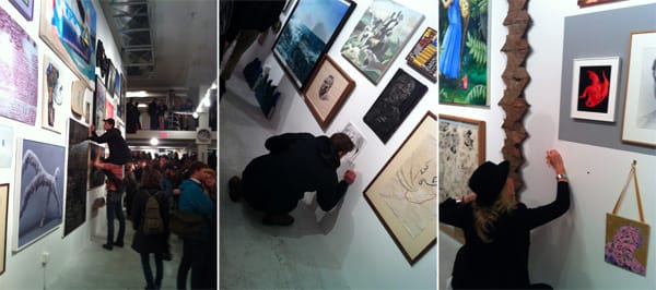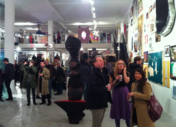 Tonight the Brucennial returned for its second edition. I hustled into the show at 5pm to avoid the lines (which went around the block in 2010). I was met with the expected paintings stacked floor to ceiling, sculpture loading up floor, Tina Turner playing on the speaker (I actually didn’t expect that!) and beer in bins.