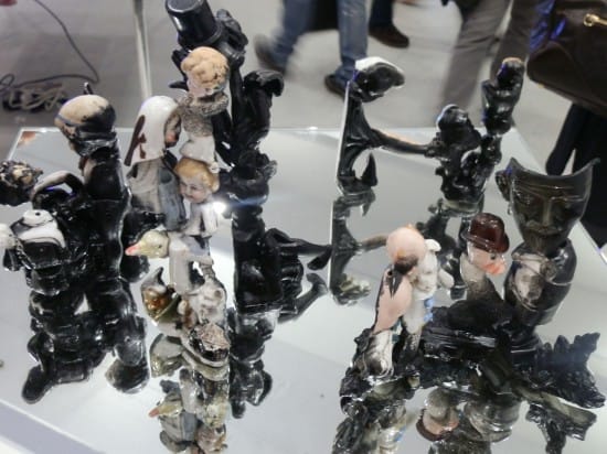For example, I would have unquestionably walked by Loredana Sperini’s small sculptures at the Freymond-Guth Ltd. Fine Arts booth at the Independent had I not randomly thought that the painted figures oddly resembled the mix of delicate, fragile figural sculpture and huge globs of paint in Michael Alan’s Living Installation, a performance piece involving sculptures as well as live performers. At first I was only slightly fascinated by the possible aesthetic connection between New York and Berlin, where Sperini lives and works. Even then it wasn’t until I decided to ask the director Jean-Claude Freymond-Guth about Sperini’s technique that I understood the power of the work and its incredible background.