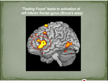And there’s more: the brains of musicians in collaboration are more active in the language area, meaning live collaboration might be, neurologically, a conversation. After an incredible video of Dr. Limb freestyling on stage, we’re also treated to studies of freestyle rappers whose brains activate visually while they rap, much more so when they’re improvising.