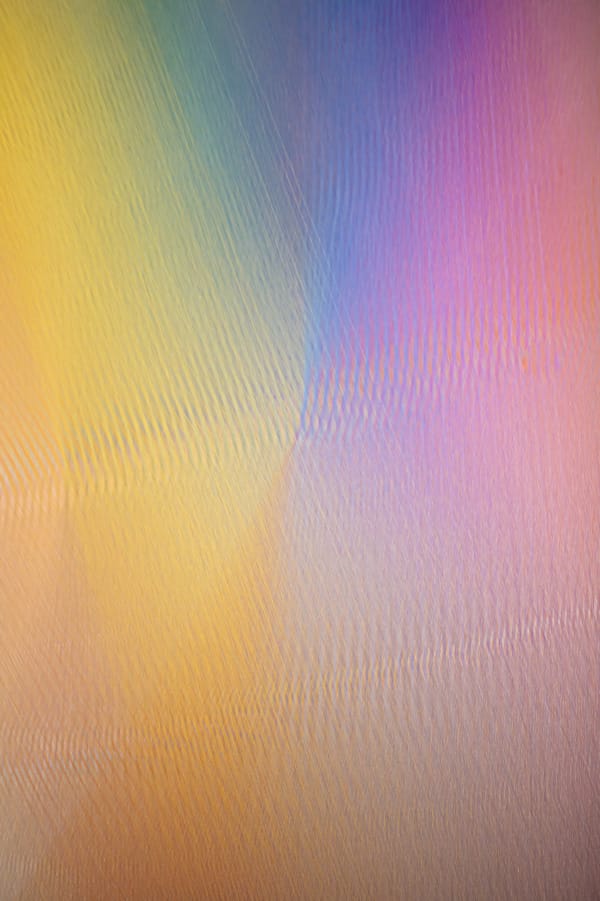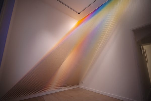 Like the rest of the Plexus series, numbers 13 and 14 toe the line between material and immaterial. Dawe says reactions to his work cover a wide spectrum: Some people find the installation serene, while others lose their bearings when faced with the massive color spectrum.
