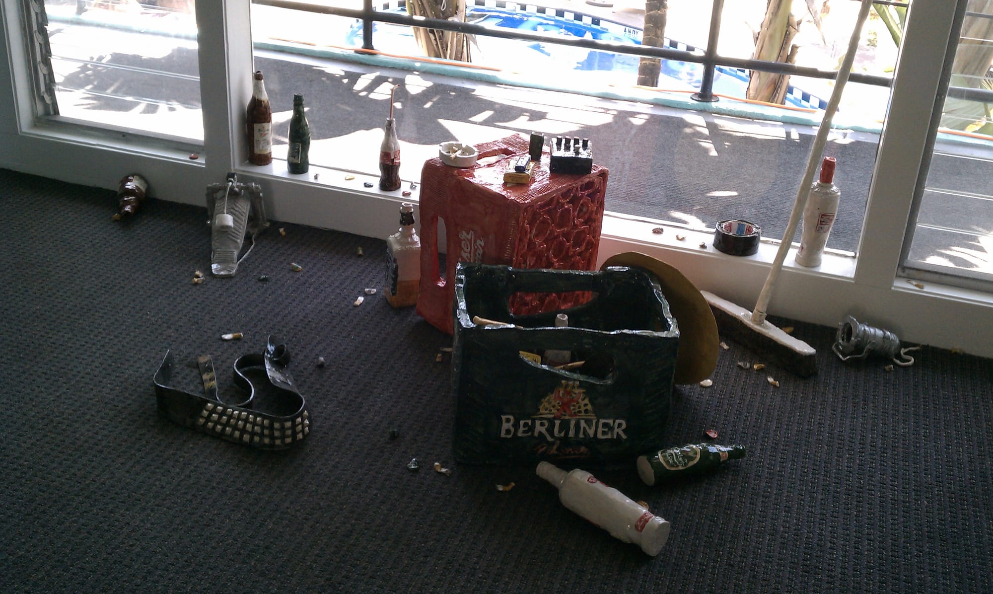 Echoing the rock ‘n’ roll theme of the hotel, Unspeakable Projects exhibited the work of Danish artist Rose Eken, whose ceramic renderings of cigarette cartons, guitar pedals and empty liquor bottles resembled the early pop replicas of Claes Oldenburg, had he been fixated on symbols of rock ‘n’ roll excess.