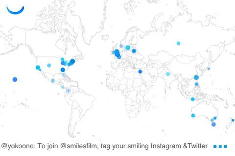 Released last week in conjunction with her exhibition at the Serpentine Gallery in London, artist, musician and activist Yoko Ono created #smilefilm, a free iPhone app that invites participants to take pictures of themselves smiling, upload them on Twitter and Instagram with the hashtag #smilefilm and with the app, the smiles are collected, mapped onto the globe and users can view the film, observing the smiles being uploaded