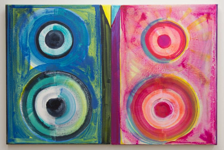 Anna Schachte, Speakers, 2012, Oil, enamel, canvas, 24 x 36 inches (click to enlarge)