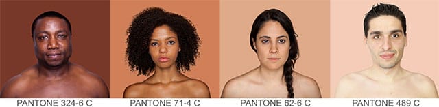 Humanity’s almost laughable fascination with lighter or darker skins is scrutinized under the camera’s lens by Brazilian photographer Angelica Dass, who has taken over 150 photographs of men and women and matched them — using a 11x11 pixel swatch from their faces — with their corresponding Pantone c