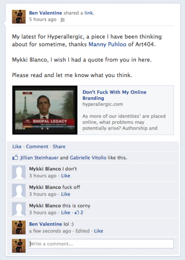 I like both online and real life, which is to say I like life, and experience it on many platforms. I want to gather as much as I can from both arenas. I don’t want to be that sad World of Warcraft player, peeing into empty Monster Energy bottles. I feel my best while walking or hiking. There is nothing greater than being physically close to someone you love or having a great conversation in person, but the internet has different interactions, different opportunities, and great potentials. I love it for its weirdness and its new horizons. I love that I saw Obama’s grammar get corrected and upvoted on Reddit. I love that there isn’t a line, and that it hasn’t been there in a long time. Living in the in-between is fun.
