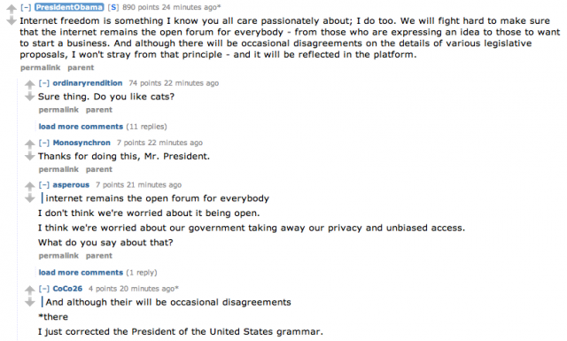 Or was getting on Reddit not radical at all? Is using Reddit once, on the heels of an election, just Obama’s logical progression in campaign marketing to get votes after his last social media-filled election on the backs of Facebook and Twitter? All we were left from that election (which elicited unprecedented voter turn out) were empty catch phrases like, “Hope” and “Yes We Can.” Did anything change besides how he moved us to vote? It seems that Facebook’s viral nature of likes and shares and Twitter’s similar functions have translated well into our political landscape. Obama is a viral president that we love and share but maybe don’t know why we do so. Obama is a Carly Rae Jepsen meme.