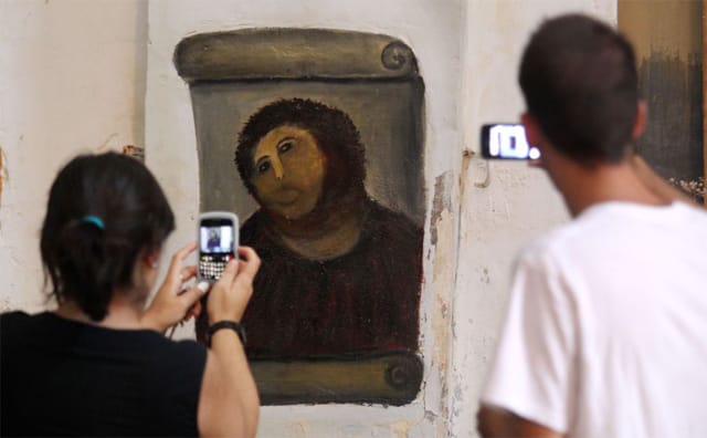 Cecilia Gimenez’s creative restoration of an 120-year-old ecce homo fresco by Elias Garcia Martinez in Spain may have become an international icon for its frizzy mane of hair and blurred face (even inspiring a Halloween costume), but it could all vanish in a matter of minutes.