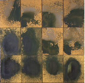This gesture, urinating on the canvas, recalls a painting by Francis Bacon, “Blood on Pavement” (1988), which looks similar to a late Rothko, split into several, horizontal bands of color and yet in the center is a smear of red paint. Some believed that this was Bacon’s way of saying, “Just by smearing red paint on the canvas and calling it blood, my painting has more emotion than your hazy, abstract forms will ever possess.” Warhol’s “piss-paintings” — to steal a common nickname used to describe the works — seem to work in the same way. Pollock, Kline, de Kooning and others inserted themselves, visually, into their works. The Oxidation series seemed to say, you want gesture? You want physical presence? You want the mark of the artist?! I’ll show you the mark of the artist! Warhol’s other abstractions in the gallery as just as mysterious and handsome as the Oxidation series despite being sans bodily fluids.