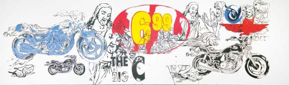 I thought it was amusing. A presentation of the Big C, the man himself, complete with motorcycles, the Wise owl (from the snack company) and an eagle! What’s not to love? Americana, baby. And all this is yours for $6.99.