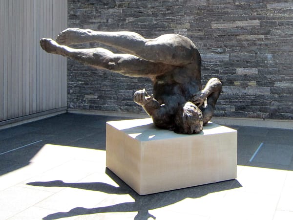 On the sculpture terrace we were confronted with Eric Fischl’s “Tumbling Woman,” a jolting bronze commemorating those who leaped in desperation from the World Trade Center. The controversial statue was removed from Rockefeller Center after a brief installation, its quiet horror now overlooked by serene tree-covered hills, far from a skyscraper shadow’s reach.