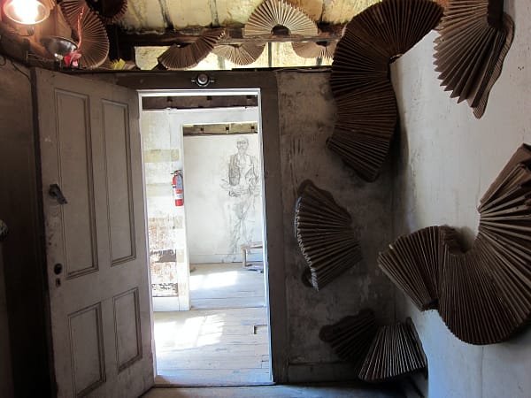 Connected to the mill are the decayed remains of a narrow hotel, which curators Ryan Frank of the Granary and Risa Shoup, development director for the Wassaic Project, transformed into Ode Hotel. Each of the seven rooms houses a separate installation resident, and other art creeps along the hallway, reminding me of the invasive sounds that must have seeped through the thin, now paint-peeled walls from the train tracks, mill and restless neighbors.