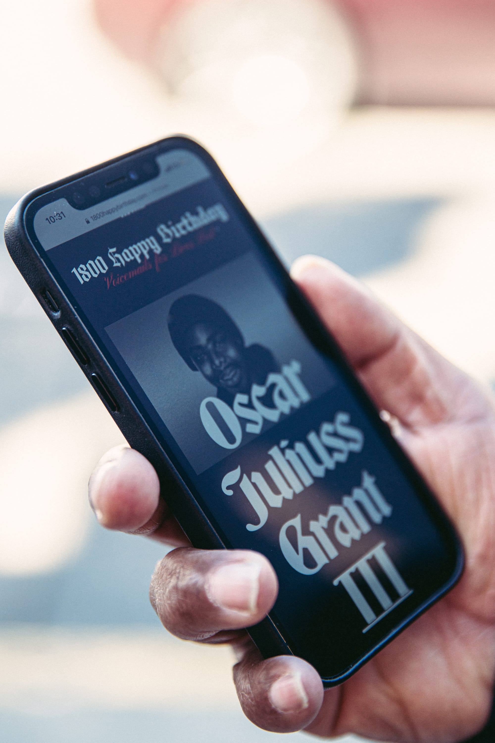The names of Black and Brown victims of police killings and systemic racism, many familiar, many not, filled the bottom half of the screen. A few appeared in red, and I clicked on Oscar Grant, murdered by transit police at the very BART station I use, on New Year’s Day 2009, the year I moved to California. His birthday would’ve been recently, and I was given the option of leaving or listening to a birthday voicemail. I pressed play and gasped to hear Grant’s mother, the Reverend Wanda Johnson, speaking intimately: “Tomorrow, in five minutes, would have been your 35th birthday...”
