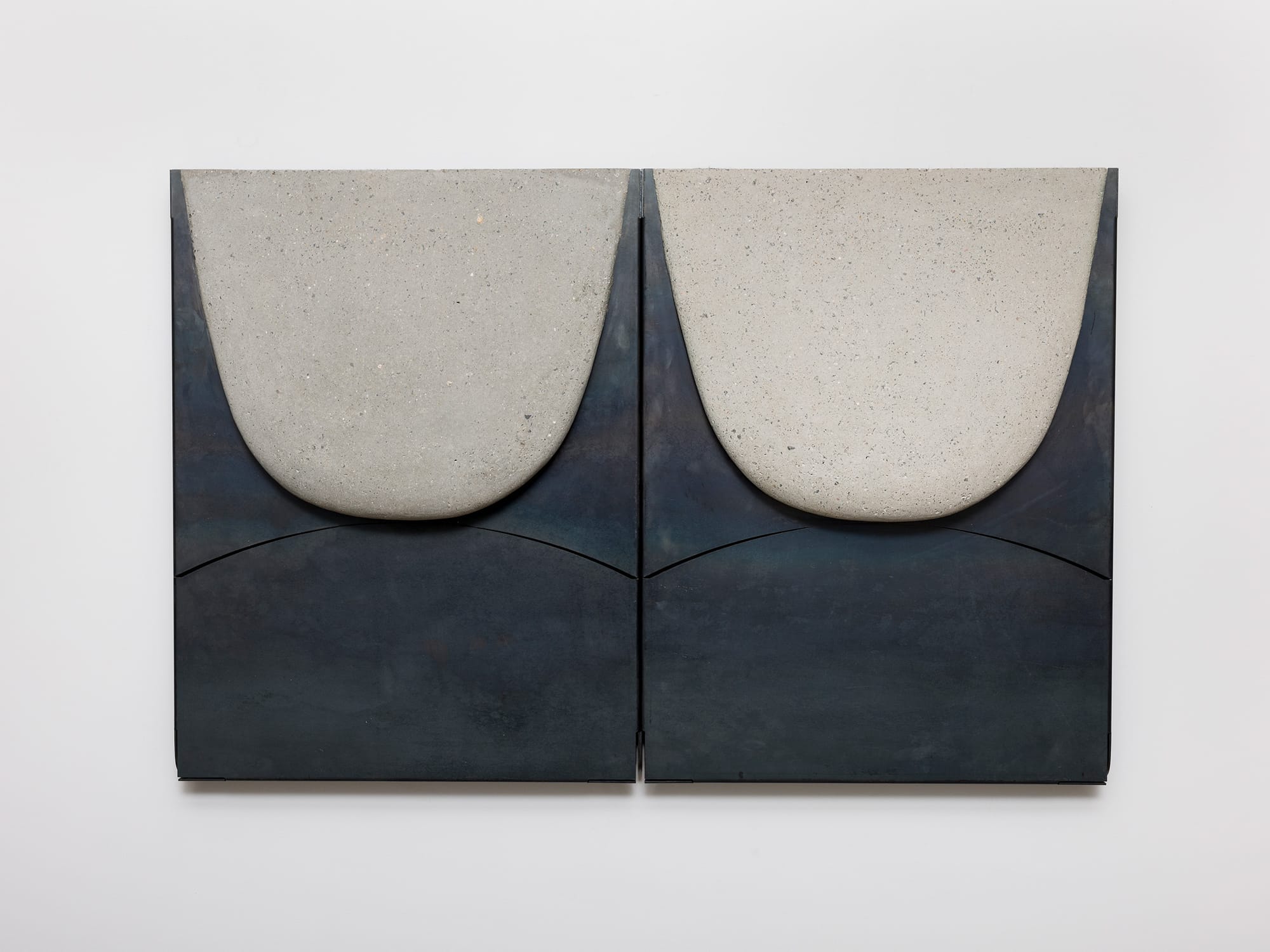 Lucas Simões, "Luscofusco" (2023), carbon steel and pigmented concrete, 55 1/2 x 28 x 6 1/2 inches (photo by Evan Jenkins, courtesy PATRON Gallery)