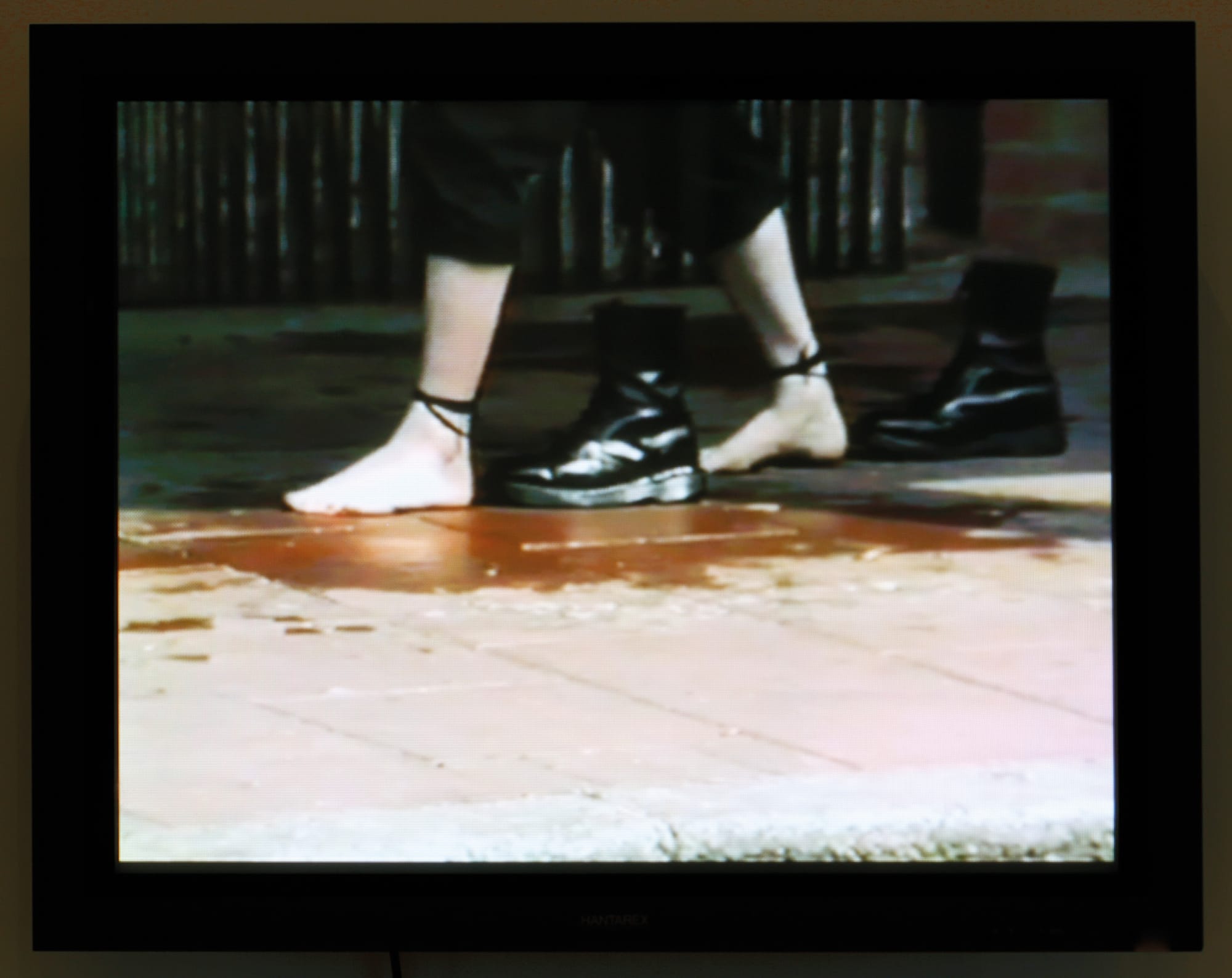 Mona Hatoum, "Roadworks" (1985), documentation of performance in Brixton, London, color video with sound, 6 minutes, 45 seconds (© Mona Hatoum; photo by Stefan Rohner, courtesy Kunstmuseum St. Gallen)