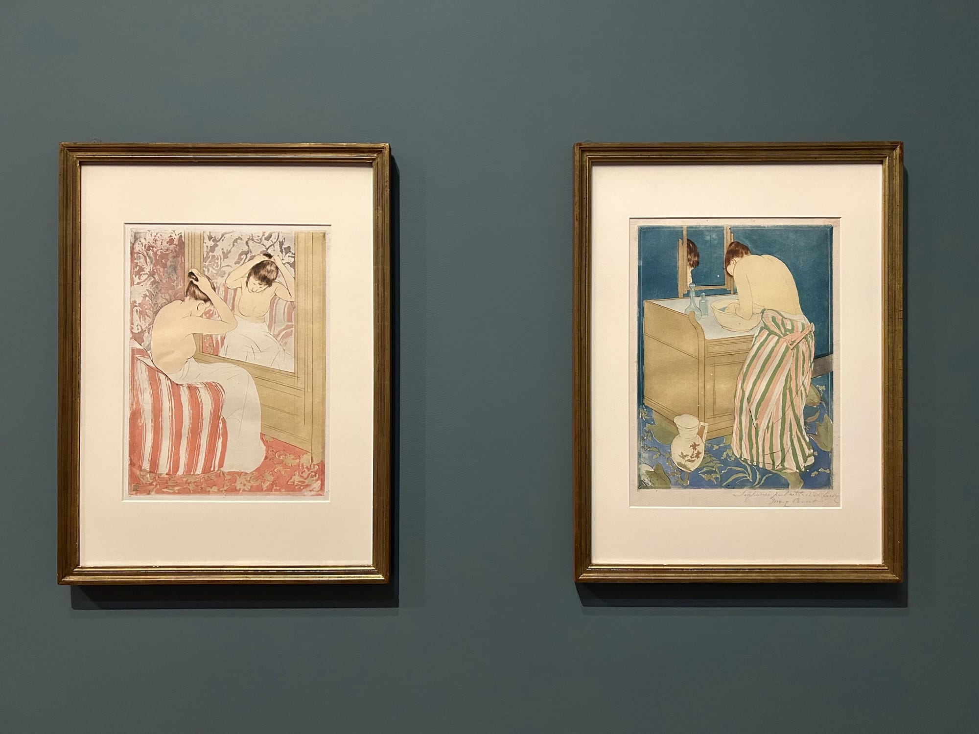 This display of 40 works by Cassatt is a welcome examination of her expansive gaze and ingenuity, including and beyond her beloved mother-child vignettes. An American in Paris surveys her prowess not only in painting but also in printmaking, which she undertook after visiting a show of Japanese prints in Paris. In this exhibition, Cassatt invites the viewer into private, often women-only spaces and intimate depictions of personal care: a girl doing her hair, a woman washing her face, or a mother kissing her child.