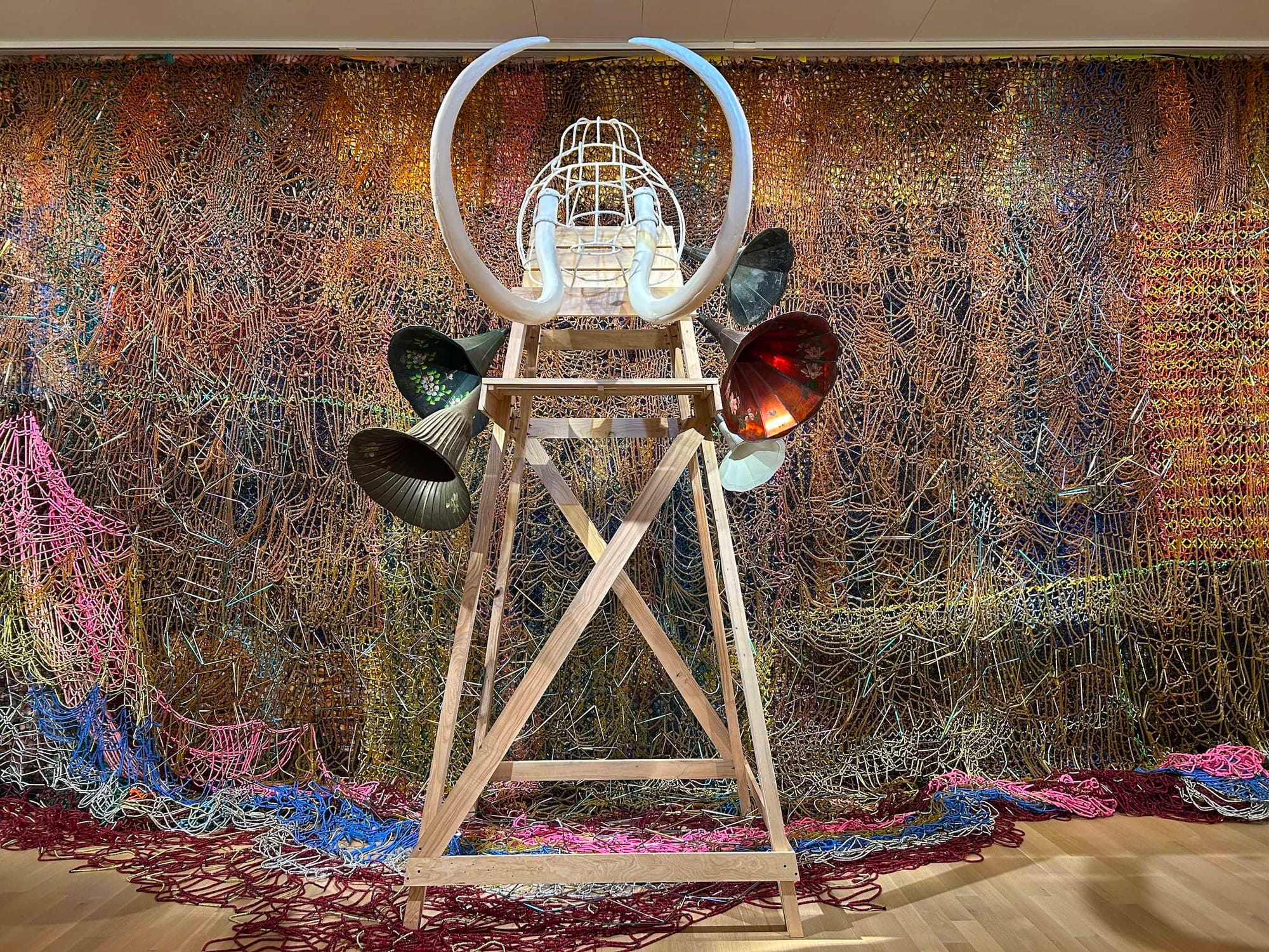Nick Cave is perhaps best known for exploring identity, race, and gender through series including Soundsuits, which examines racialized police violence. In this new show, Cave turns his attention toward the natural world and how we negotiate our relationship to it. He explores the connection of American landscape to race, and social history to ecological narratives that transcend the country’s history. Visitors are transported into a world where long-extinct animals wander the Earth again, walking through an immersive installation framed by the hides and bones of mammoths.