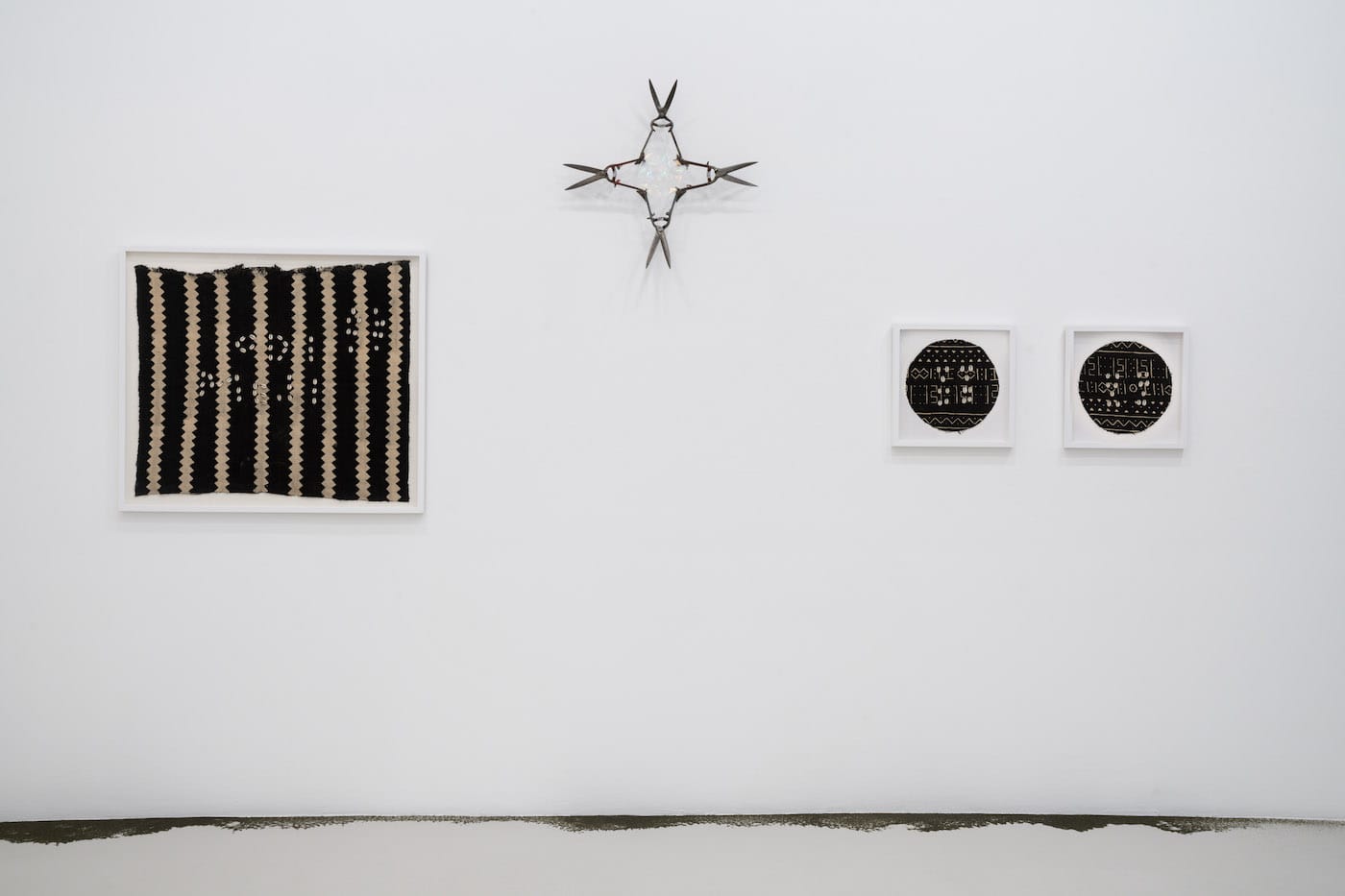Freedom Portals is a two-person show featuring the work of artists noé olivas and Patrisse Cullors, also known as one of the founders of the Black Lives Matter movement. The exhibition draws on Ifá, a Yoruba religion from West Africa, which communicates wisdom and teaching through a series of 16 Odú or books. Cullors’s textile works incorporate Malian mud cloth, yarn, and cowrie shells to interpret 12 of these Odú. olivas’s sculptures made from garden shears, glass, and satellite fragments reference portals used to communicate with those in the afterlife. Their spiritually rooted collaborative practice can be viewed in the context of the Crenshaw Dairy Mart, a community-based arts-space founded in 2020 by Cullors and olivas with alexandre ali reza dorriz that links art, activism, and ancestral knowledge.