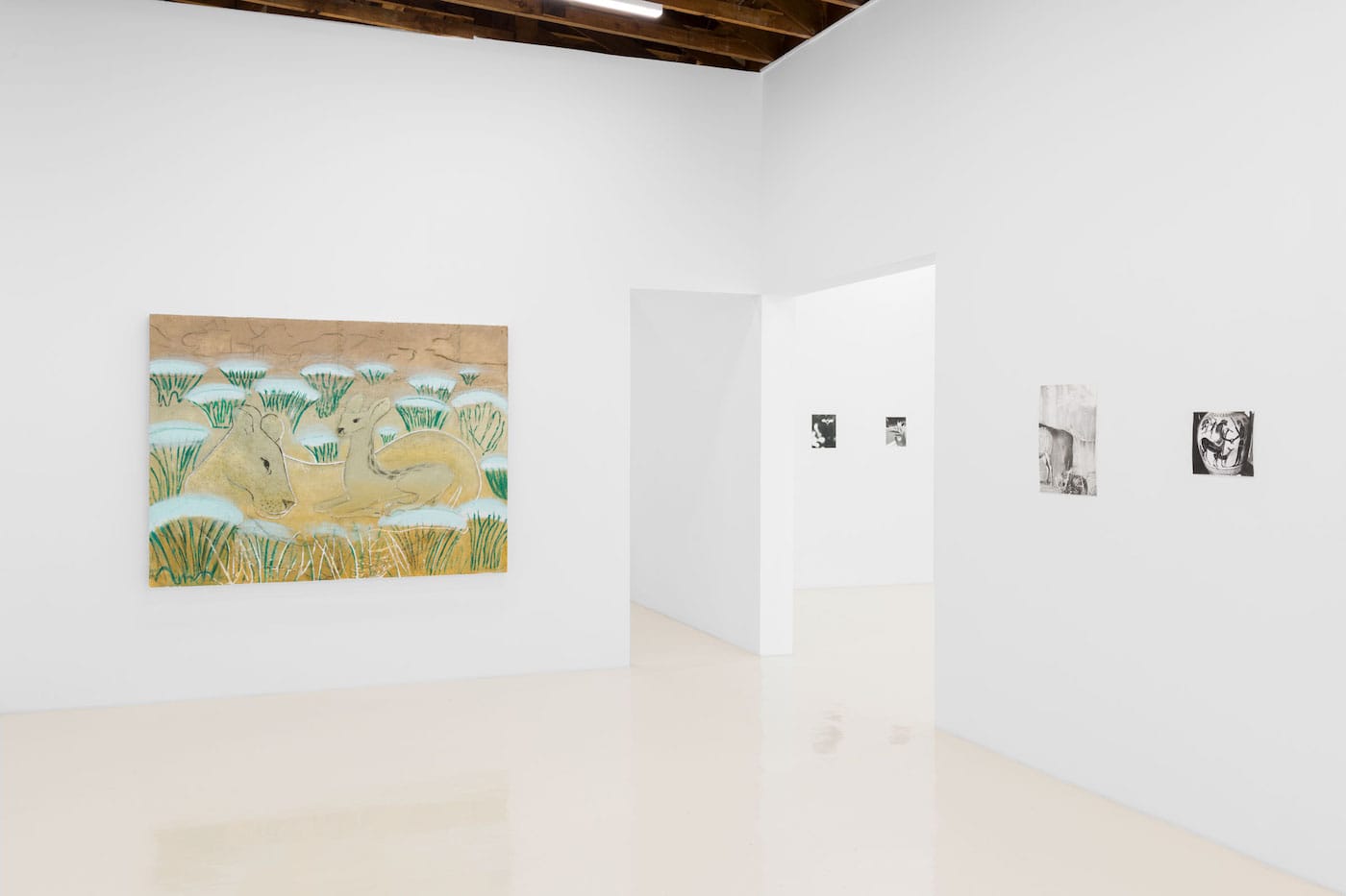 German artists and longtime friends Jochen Lempert and Lin May Saeed both explore the relationship between humans and animals, albeit in very different practices. Saeed's sculptures, carved from styrofoam or cast in bronze, depict flora in fauna caught between paradise and precarity. Her rough-hewn surfaces recall ancient Egyptian or Greek relief friezes. By contrast, Lempert's formally rigorous black-and-white photographs are more contemplative, quiet images that encourage absorption in the details of the natural world.