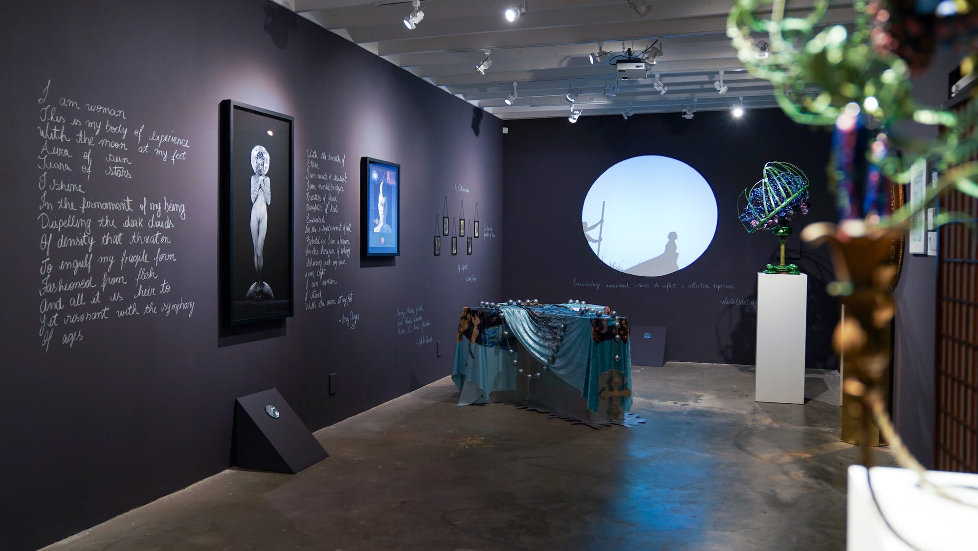 Conceived as part of a monthly curatorial program titled Surrealist Study Group (SSG) at the Philosophical Research Society, With the Moon Under Our Feet brings together seven women artists whose work draws on futurism, surrealism, and portraiture to create new forms of bodily autonomy and feminist empowerment. Works in the show include Penny Slinger’s cosmic collages, Regina Herod’s baroque assemblages of wax, metal, and found objects, Lezley Saar’s paintings of psychics, and Jaklin Romine’s cruciform family altar draped in chiffon, velvet, and spandex.