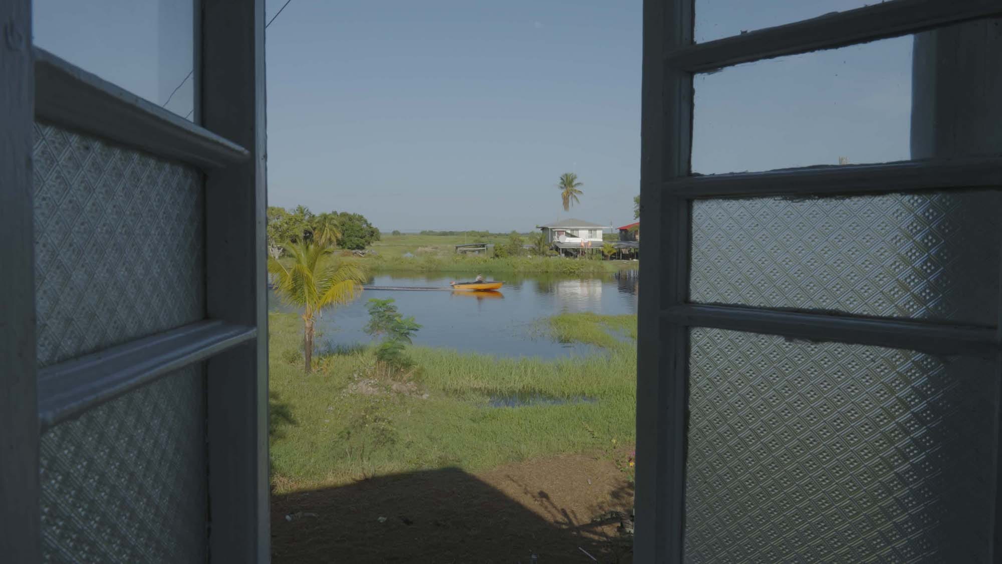 Vishal Jugdeo’s Caribbean Television is an ongoing project examining the legacy of colonialism in Guyana. The first episode is a 47-minute video titled “Deo’s Moon” (2023), in which the artist’s uncle Deo guides viewers through Guyana’s beaches, streets, and markets, as he weaves together a subjective narrative. Through this unconventional structure, Jugdeo wrestles with the intersecting threads of family, race, history, and queerness as they manifest themselves in a country he finds both familiar and enigmatic.