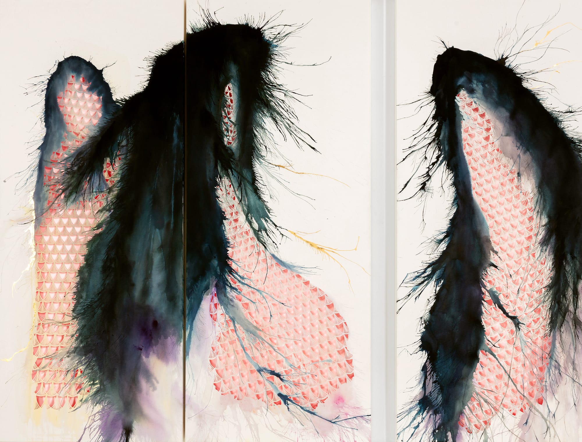 Ken Gun Min’s fantastical paintings draw from both European and Asian styles and techniques, a fusion that reflects his own global journeys. Born in Seoul, South Korea, Min lived in Zurich, Berlin, and San Francisco, before moving to Los Angeles’ Koreatown a decade ago. He incorporates Korean pigments and hand embroidery into traditional oil paintings, whose verdant landscapes and idealized bodies reflect precedents from the European Renaissance and Romanticism to Asian textiles and landscape painting. However, his works are firmly rooted in the here and now of contemporary Los Angeles, with titles referencing local neighborhoods, and featuring diverse depictions of Asian masculinity not often seen in mainstream art and culture.